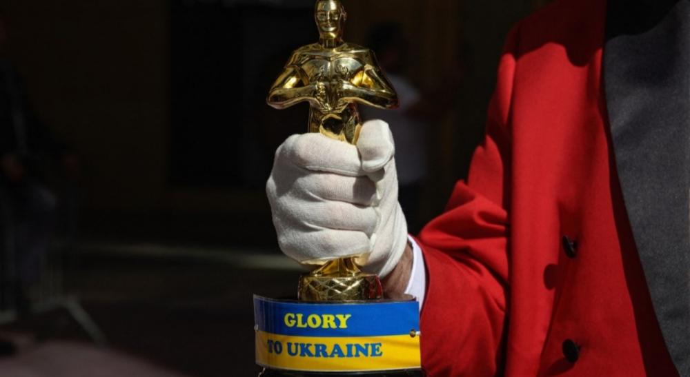บางช่วงบางตอนของงานออสการ์ได้เข้าสู่การสงบนิ่งเพื่อแสดงความเป็นอันหนึ่งอันเดียวและให้กำลังใจพลเมืองยูเครนที่ต่อสู้กับการรุกรานของรัสเซีย ทางผู้จัดได้ใช้พื้นที่บนเวทีแห่งนี้ในการร้องขอให้ผู้ชมให้การสนับสนุนพลเมืองยูเครน พร้อมติดแฮชแท็ก ยืนเคียงข้างยูเครน หรือ #StandWithUkraine หลังจากนั้น คริปโต ดอท คอม บริษัทสินทรัพย์ดิจิทัลระบุว่าจะบริจาคเงินเพื่อบรรเทาปัญหาด้านมนุษยธรรมในยูเครน
